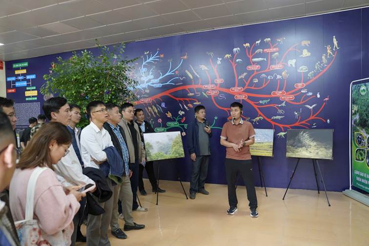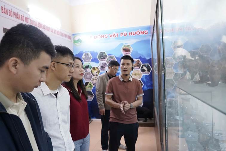 Trong khuôn khổ chương trình, các học viên đã tham quan Nhà bảo tàng thiên nhiên – văn hóa mở Khu BTTN Pù Huống, nơi lưu giữ và trưng bày hệ thống tư liệu, hình ảnh và mẫu vật tiêu biểu phản ánh giá trị đa dạng sinh học, lịch sử hình thành và bản sắc văn hóa đặc trưng của khu bảo tồn. Hoạt động này được lồng ghép chặt chẽ với nội dung tập huấn, giúp học viên tiếp cận trực quan các đối tượng bảo tồn, tăng cường khả năng liên hệ giữa kiến thức chuyên môn và thực tiễn quản lý.